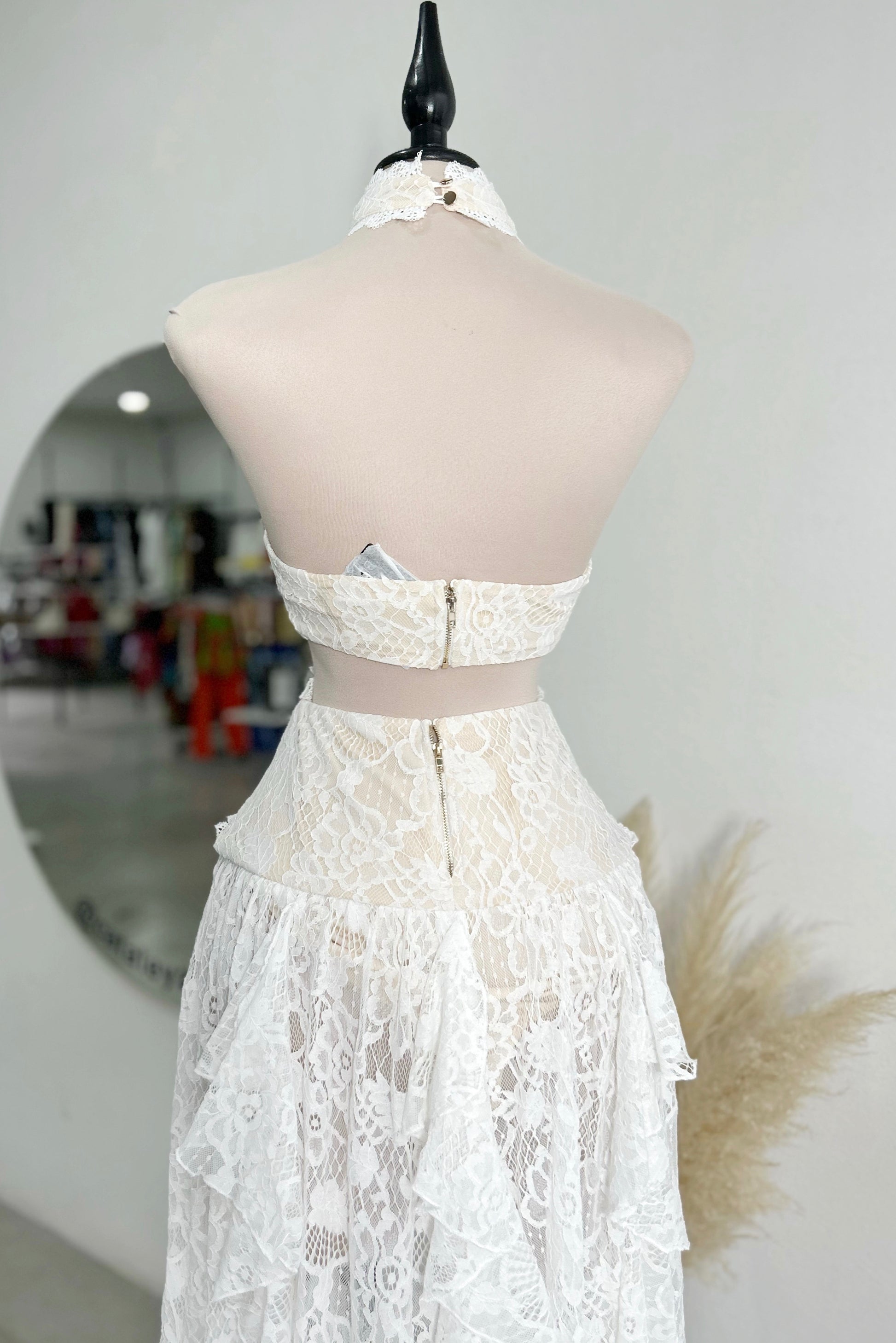 Vestido encaje cut out blanco