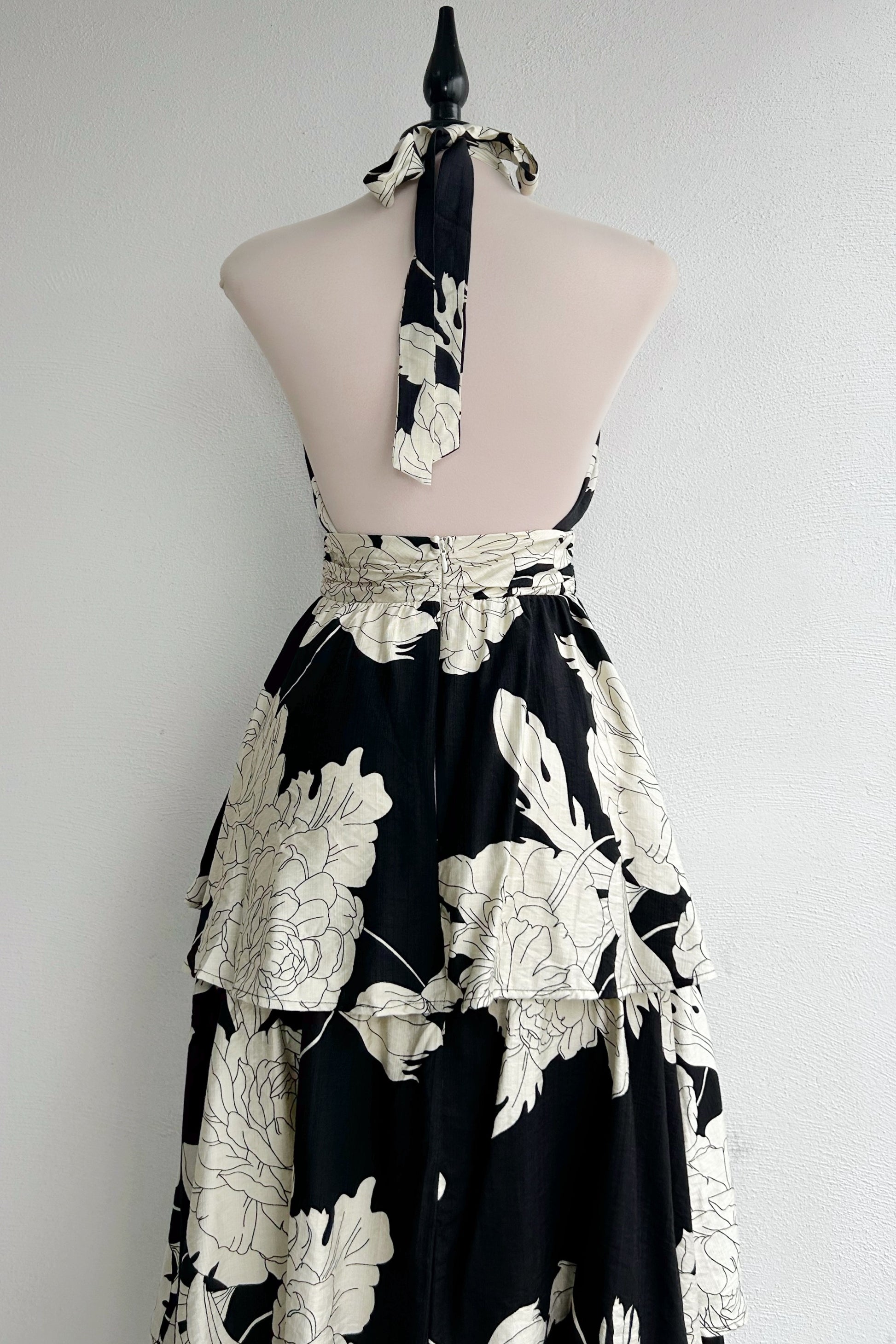 Vestido halter floral B/W