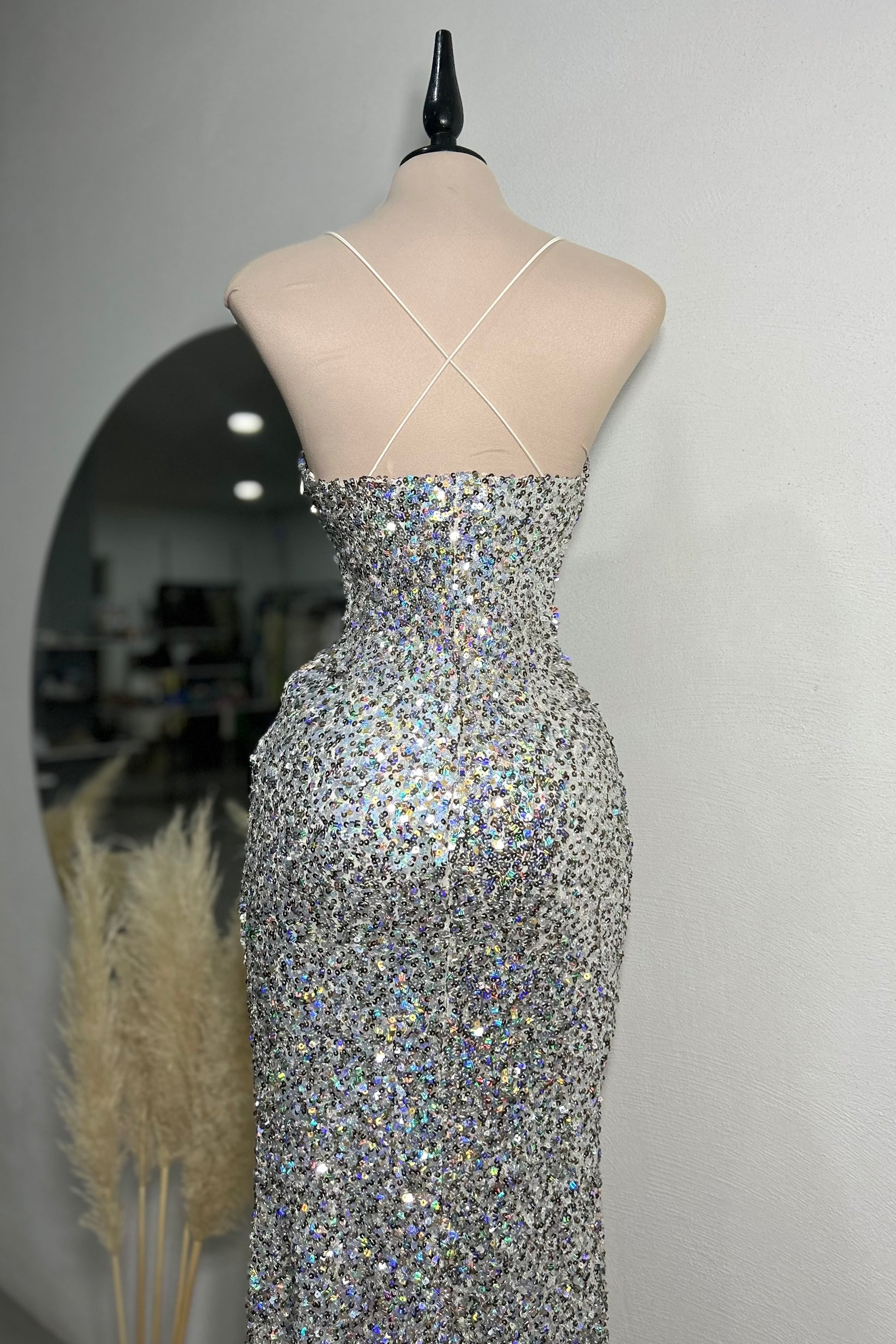 Vestido largo lentejuelas plata