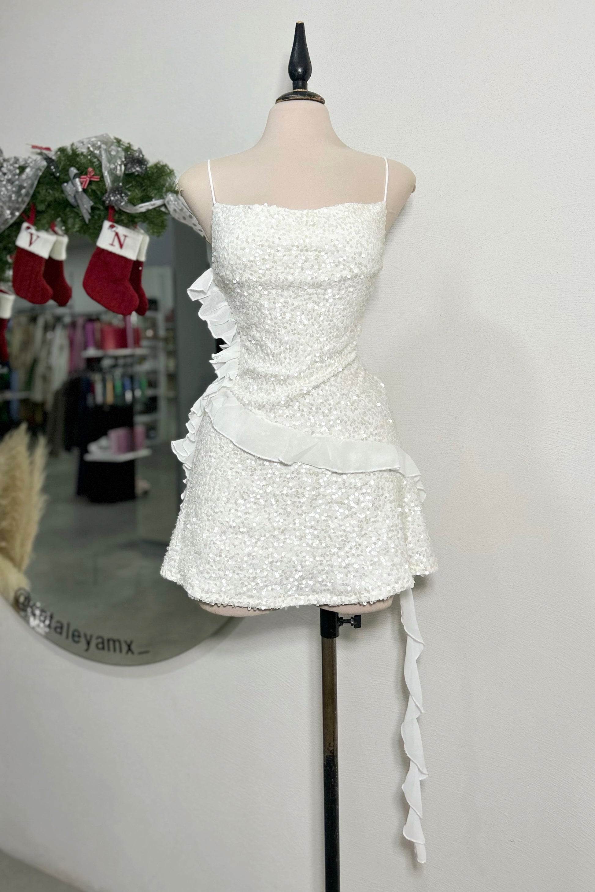 Vestido lentejuelas blanco con holan